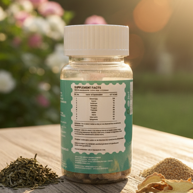 Contains 60 capsules per bottle. For complete ingredient proportions, dosage details, and nutritional information, please refer to the product label.