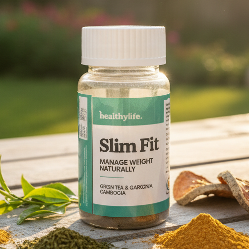 Healthylane Slim Fit is a natural weight management supplement formulated with powerful botanical ingredients to support healthy weight loss and metabolism. This capsule-based supplement combines Green Tea extract and Garcinia Cambogia, two well-researched natural ingredients known for their fat-burning and appetite-suppressing properties. Each bottle contains 60 capsules designed to help manage weight naturally when combined with a balanced diet and regular exercise. The formula aims to boost metabolism, reduce cravings, and support your fitness goals.